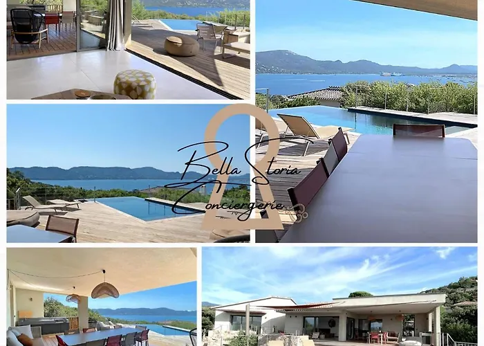 La Villa Cazelie, Piscine Vue Splendide Sur Le Golfe Porto Vecchio, situada a una distancia de 3 km del Grande Plage de Cala Rossa, cuenta con una terraza con vistas al mar.